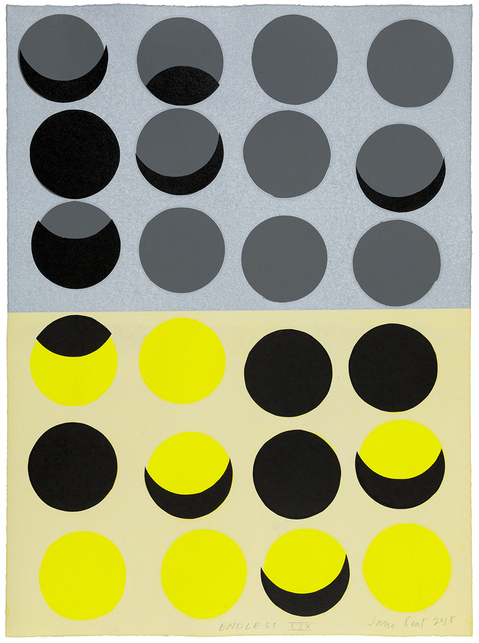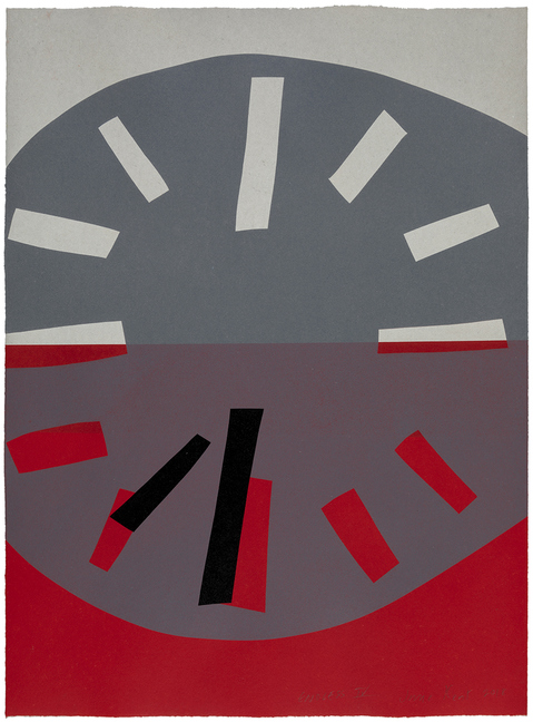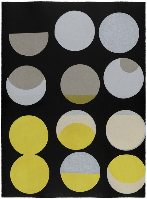 Kent’s vibrant monotypes are made up of many layers of colors printed with the use of hand-cut masking stencils. While working on her 2018 series Endless I–XXI, she would contemplate questions such as, “What does four o’clock look like?” or “What time do these colors feel like?” prompting us to reevaluate our perception of time and the features of various timepieces—commonplace clocks and watches, lunar calendars, hourglasses—that record and represent it.